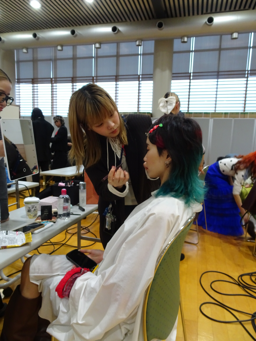 あとはいつも総監督のような役割をしてくれる繁昌。メイクの指導はもちろん、Terve.のヘアショーが毎回好評なのには、こうして裏方に徹してくれている繁昌の存在はとても大きいです。リハーサルもしっかり役割分担されて短い時間の間にブラッシュアップされてます。